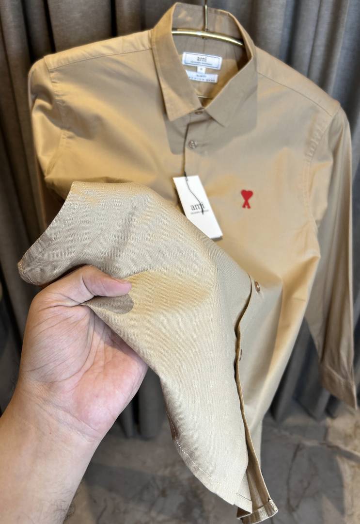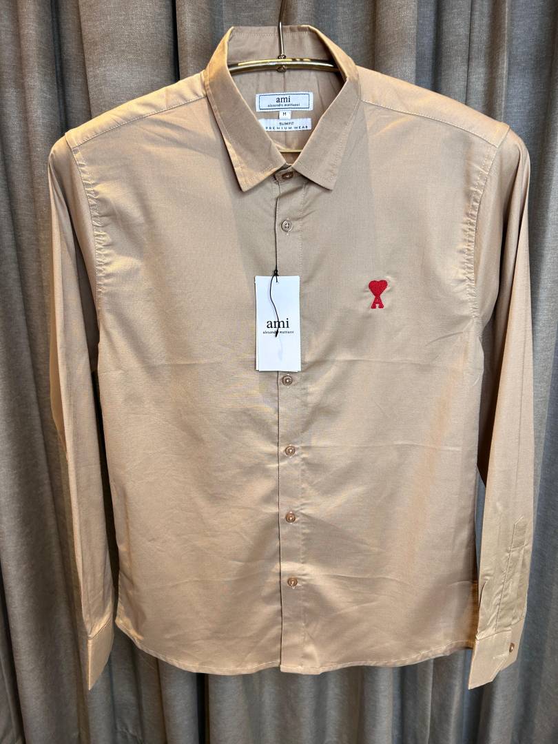 AMI PARIS BEIGE PREMIUM IMPORTED RED LOGO SHIRT