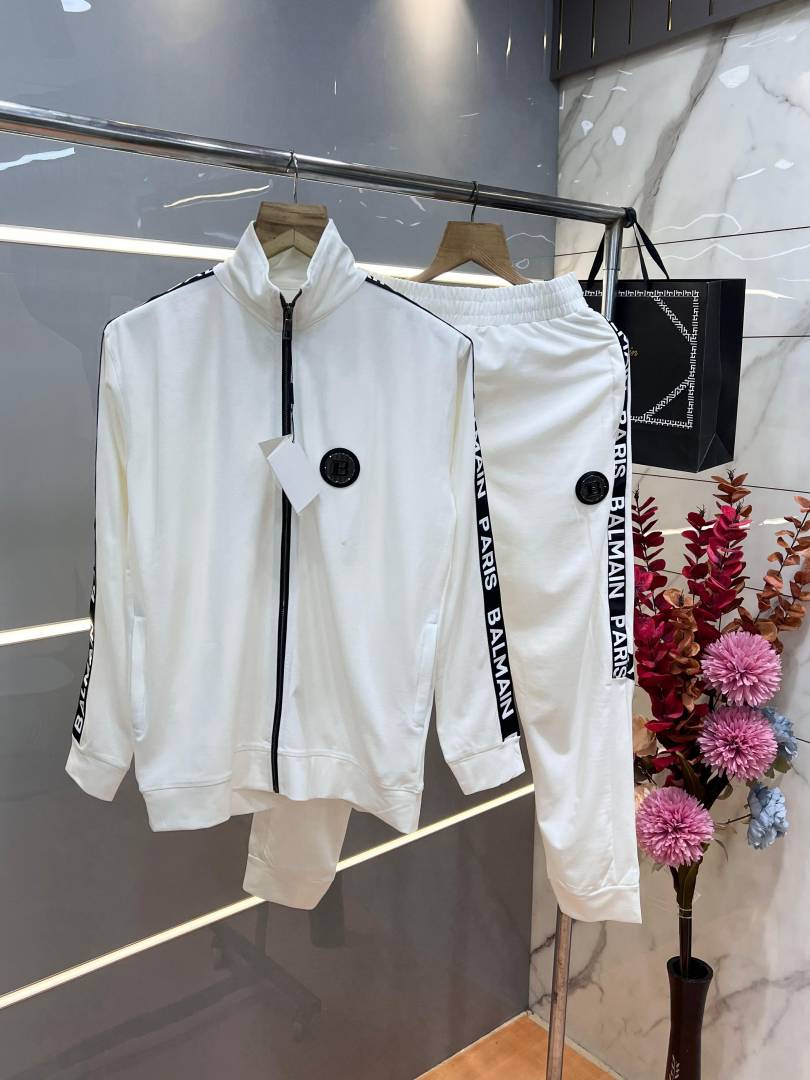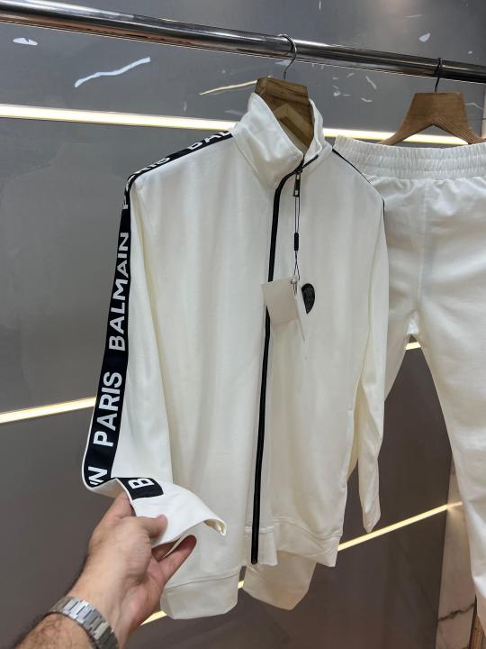 Balmai n Paris White Premium Imported Fabric Shoulder Strip Metal Logo Zipper style Tracksuit 3406